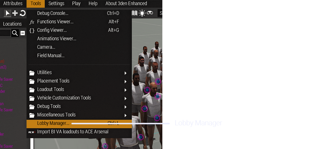 In order to have the teams names properly showing on the map, their callsigns needs to be changed manually in the “Lobby Manager” in “Tools” (only available with 3den Enhanced), as the composition doesn’t save them.