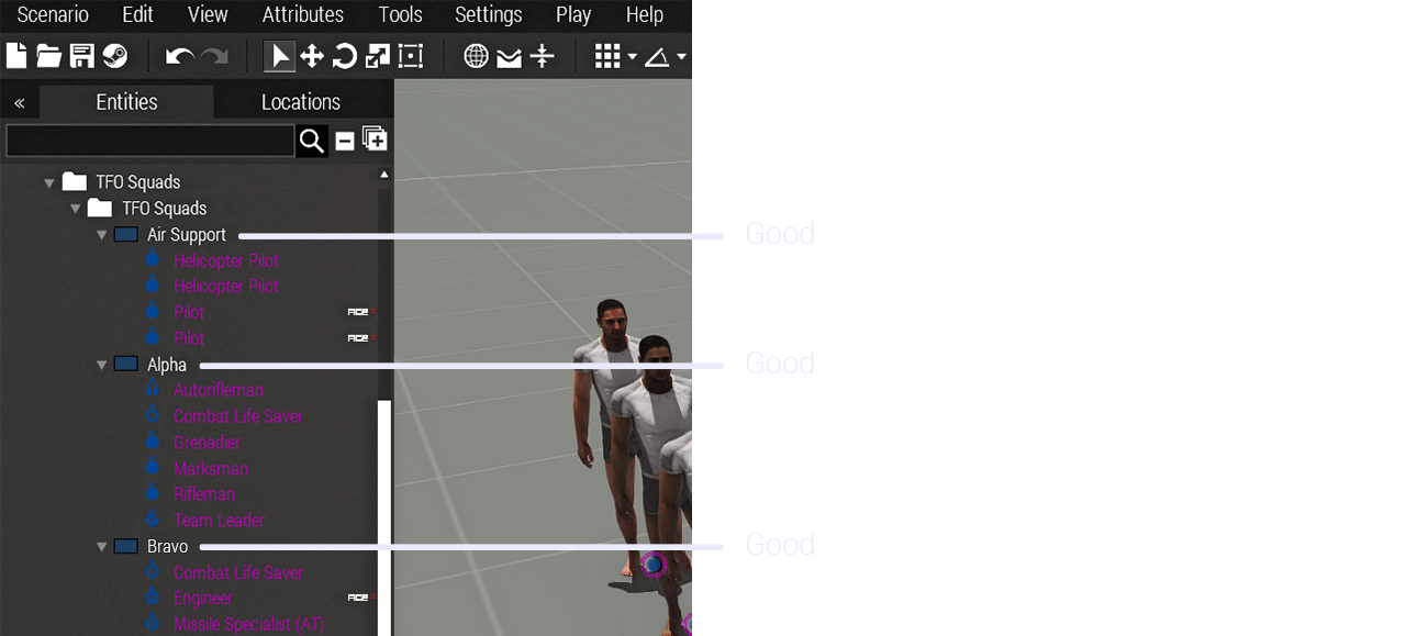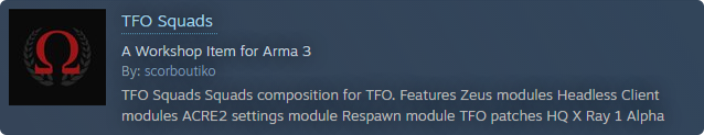 We need a specific player layout according to our sign up sheets HERE. To get this player layout in Arma with the correct configurations, a composition is available on the workshop :